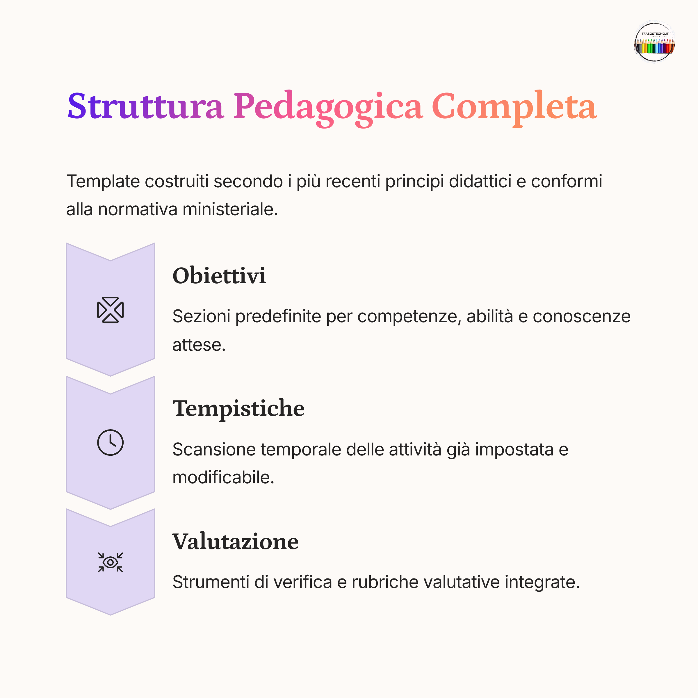 Facilità d’Uso: Struttura logica e progressiva che ti guida passo dopo passo nella costruzione della lezione